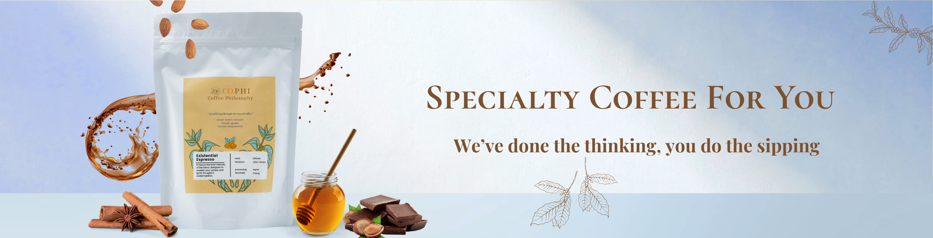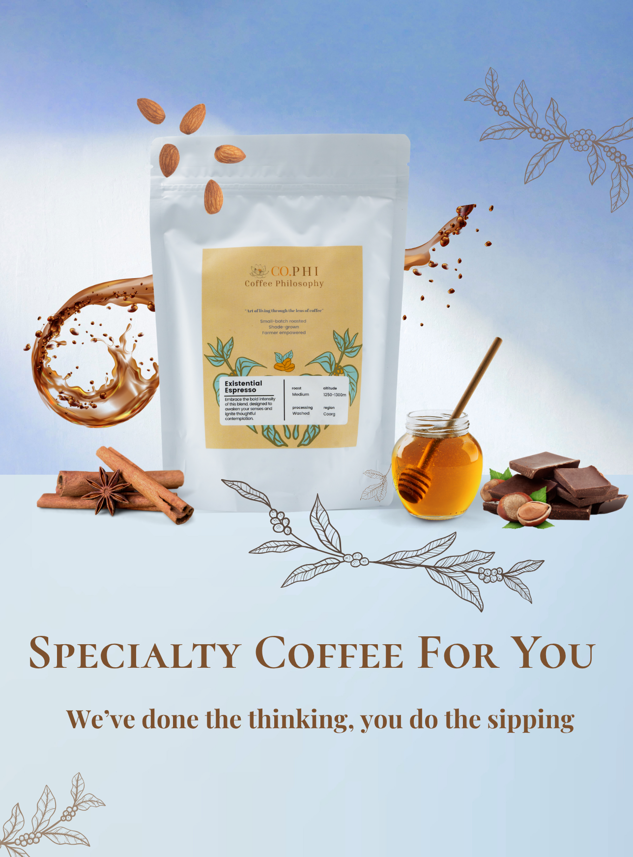 CO.PHI Coffee Philosophy brings together South India’s finest farms and mindful roasting. Every cup reflects our commitment to ethical sourcing, sustainable practices, and coffee with meaning — crafted not just for flavour, but for reflection and connection.