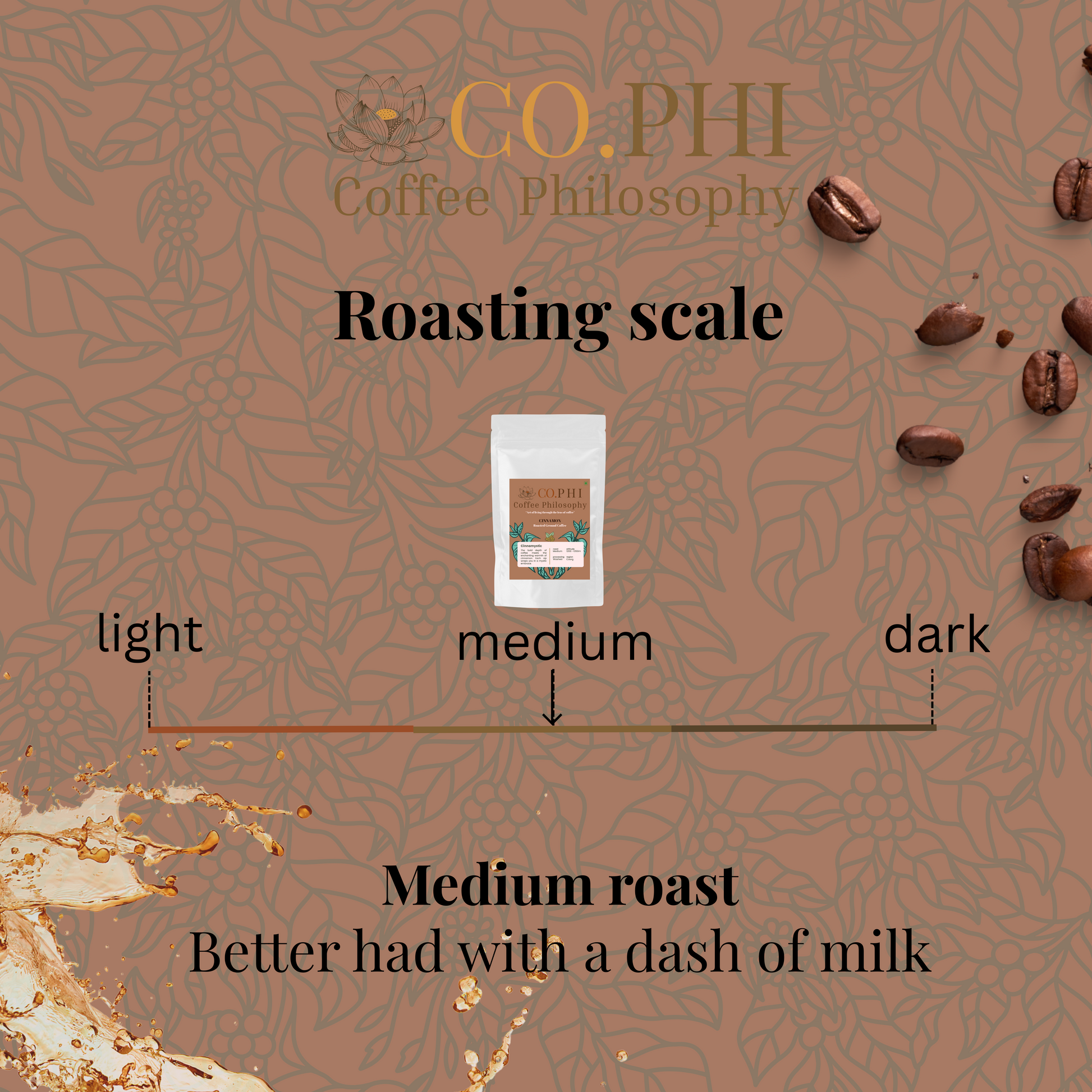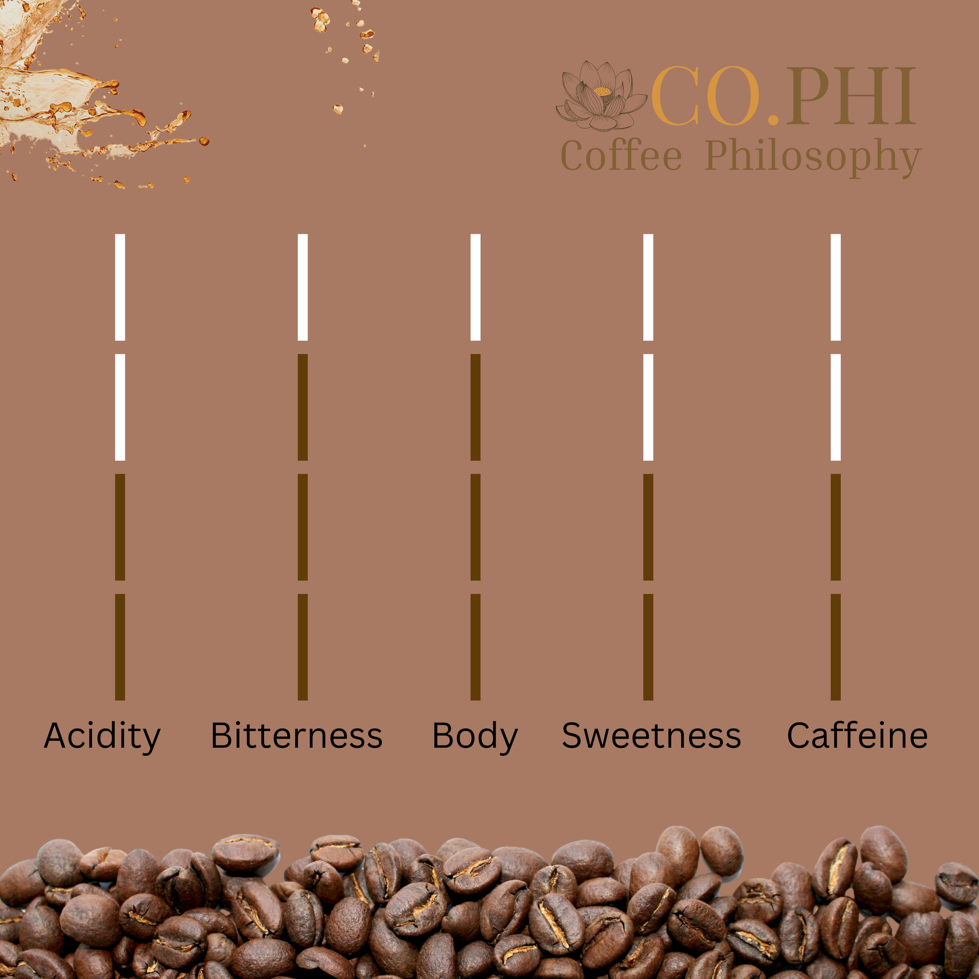 This medium roast blend offers a balanced acidity and smooth body, slightly enhanced by the warmth of spice. Subtle notes of sweet cinnamon intertwine with hints of caramel and toasted nuts, creating a layered complexity that finishes with a soft, spiced persistence on the palate.