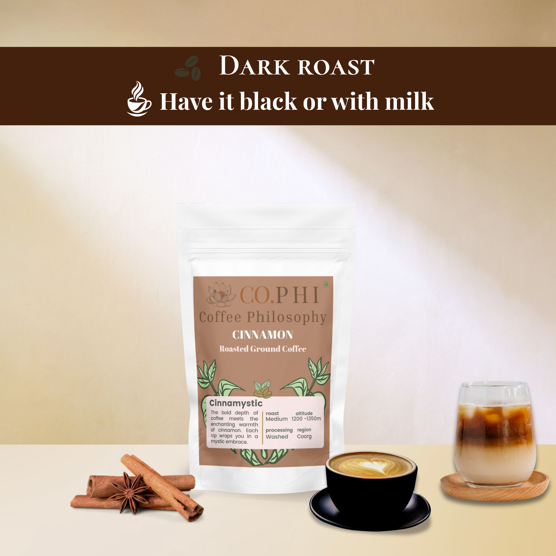 “Cinnamystic” represents the warm spark of mysterious discovery, weaving a harmonious balance between the bold clarity of medium roast coffee and the comforting spice of cinnamon. Each sip is an invitation to pause, reflect, and savor the enchanting complexity of life."