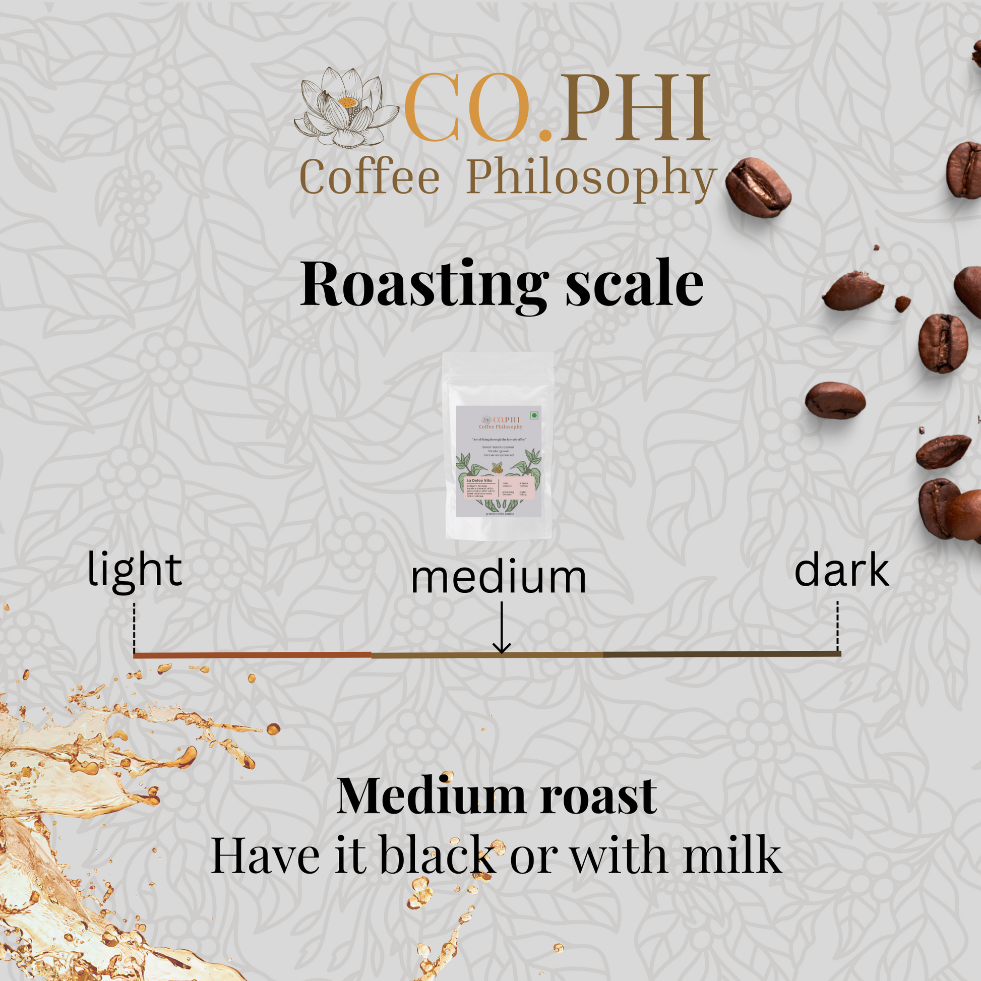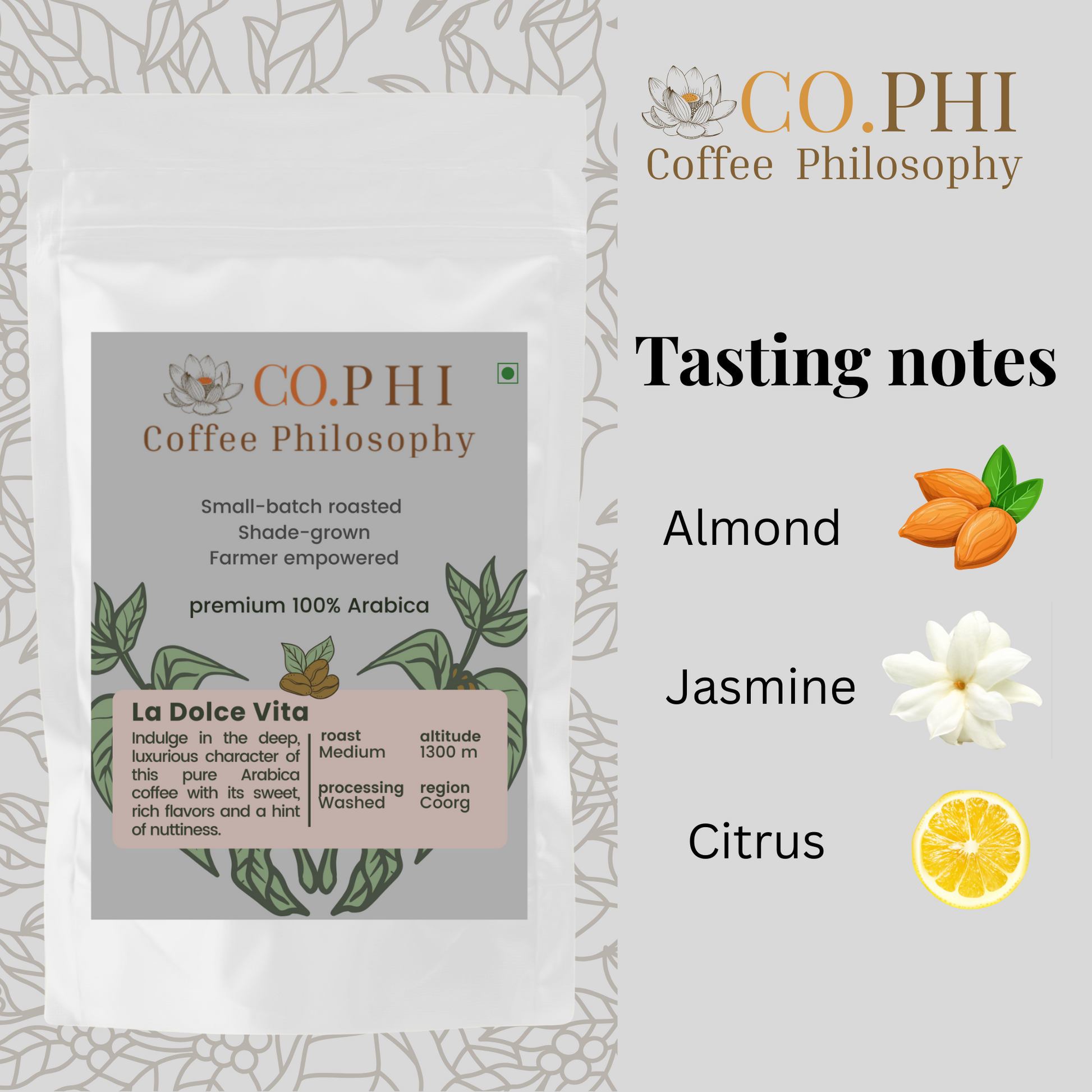Coorg - La Dolce Vita is crafted from 100% Arabica beans grown in the lush high-altitude estates of Coorg. These beans are nurtured under a canopy of shade, handpicked at peak ripeness, and carefully processed to retain delicate floral and citrus notes. The elevation, soil richness, and cool misty climate of these estates give the coffee its smooth body and balanced complexity. It’s Arabica at its most elegant — grown with care, roasted to perfection.