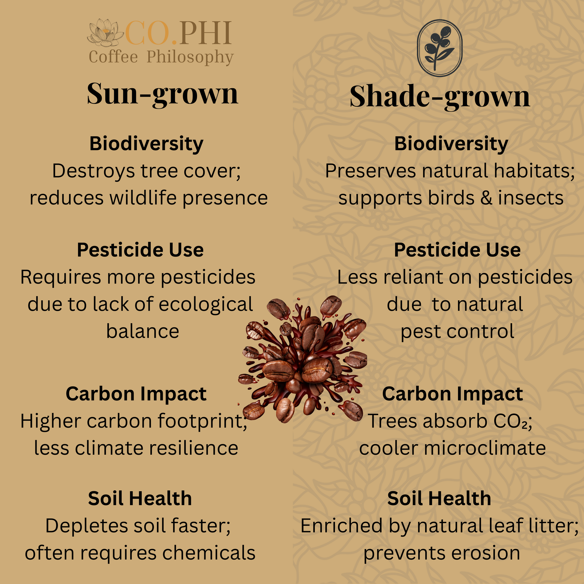 Why Shade- grown matters? Our coffee is grown under the natural canopy of native trees — a method known as shade-grown farming. This slower, more sustainable approach allows the beans to mature gradually, developing deeper, more complex flavours. Shade-grown farms support richer biodiversity, protect bird habitats, and preserve soil health. The result is coffee that’s not only better for the planet, but also smoother, fuller, and more nuanced in every cup. It’s nature’s way of growing better coffee.