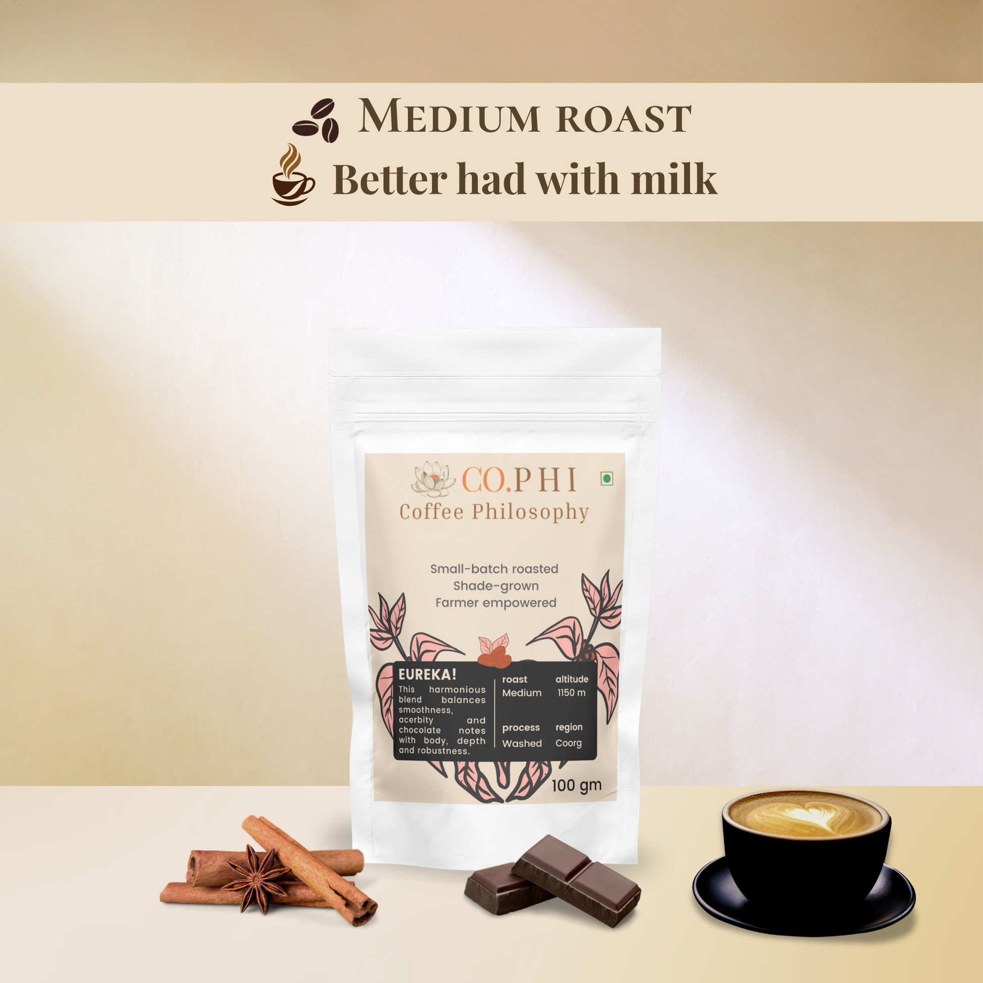 Discover “Eureka,” a blend that makes your taste buds dance, while creating a harmonious fusion of rich flavors and a vibrant kick. Experience the perfect balance of smooth, aromatic notes with a robust, invigorating body. Every sip is a moment of pure genius!